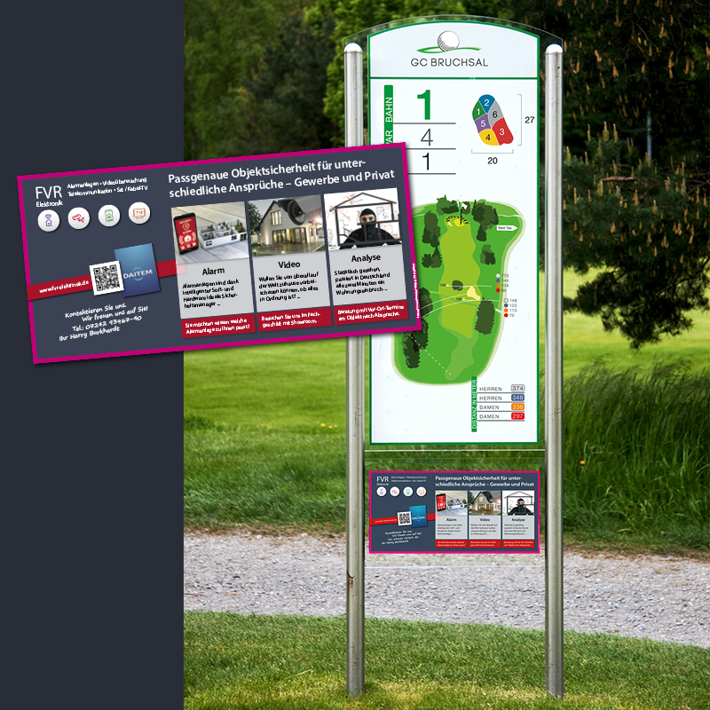 Ziel des Auftrags war ein zeitgemäßes Design für alles, von Logo über Webseite, Schaufensterbeklebung und Anzeigen bis hin zu Firmenschildern, Golfclub-Abschlagtafeln, KFZ-Beschriftungen, Kennzeichenhaltern, Visitenkarten, Briefpapieren, Briefumschlägen, Schreibblöcken, Schreibtischunterlagen, Stempeln, Werbeteppichen für Verkaufsräume, Werbetassen , Werbegetränkedosen, Aufklebern und Acrylglasplatten.