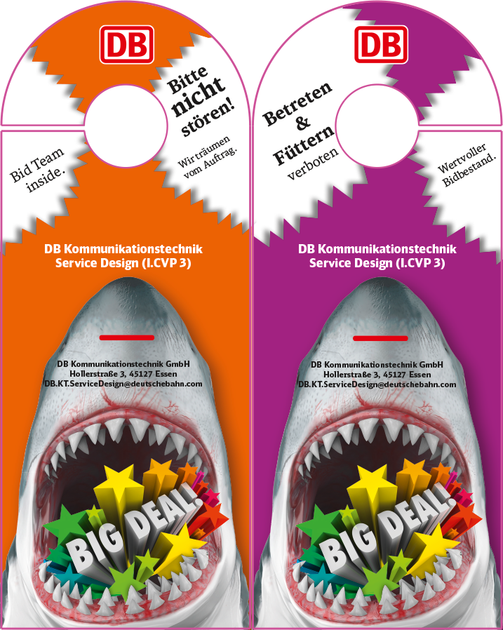 Für den Kunden DB Service Design gestalte ich nicht nur einen, sondern gleich vier Türanhänger mit dem Motto „Big Deal“. Mit individuellem Design und perfekter Anpassung an die Stanzform sorgen sie für Ruhe und Entspannung.